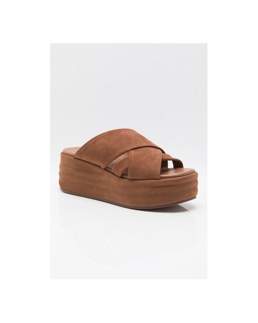 Elevate your sandal collection with this resort-ready pair from FP Collection, featuring smooth suede straps that wrap around the forefoot, a rounded open toe, and a layered, suede-wrapped flatform sole for a refined touch. * Nubuck suede uppers * Slip-on flatform sandals * Breathable faux leather lining * Rubber outsole * **Platform Height:** 2.24 in Wanderbay Flatform Sandals by Free People in Latte, Size: US 7