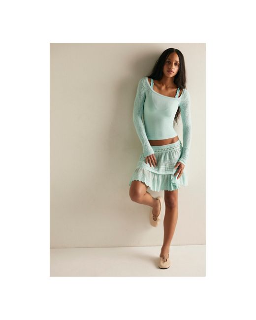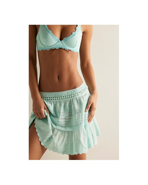 We're captivated by the details of this half slip from Intimately, featuring a billowy tiered silhouette, a gauzy cotton fabrication, and enchanting embroidered details for a touch of whimsy. * Cross-stitch paneling * Lace trim * Horizontal tucks * Mini-length Play Nice Half Slip by Intimately at Free People in Ocean Glass, Size: XS