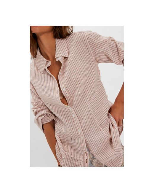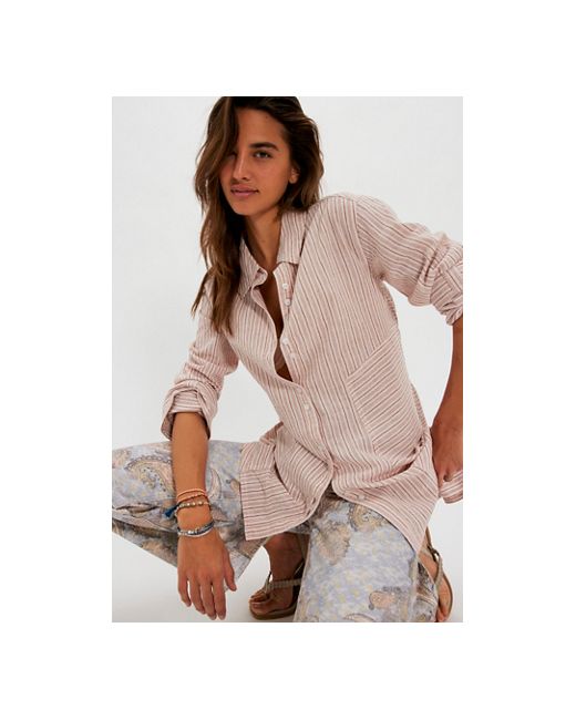 Your next wardrobe essential, this button-down from our We The Free collection features a tailored, longline silhouette, a breezy cotton-linen fabrication, and an adjustable back tie for a customizable fit. * Long sleeves * Button-front closure * Collared neckline * Elongated cuffs We The Free Sun Gazer Button Down at Free People in Pink Combo, Size: XS