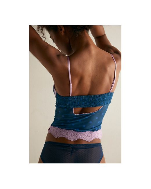 Alluring in lace and semi-sheer mesh, this eye-catching cami from Intimately features smocked details along the neckline and back, scalloped contrast lace trim, and a back cutout for an added dimension to this night-out-ready style. * Semi-sheer mesh and lace fabrication * Pull-on cropped cami * Lightly-lined bust with defined cups * Adjustable shoulder straps Call It A Night Cami by Intimately at Free People in Dot, Size: XS