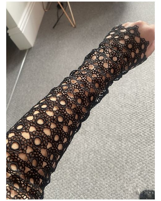 Very stylish laced gloves, can be worn with any clothes It has stretchy top so can be worn to any hands but I’d suggest up to UK12 There are no tags but it belongs to Roland Mouret Gorgeous laces