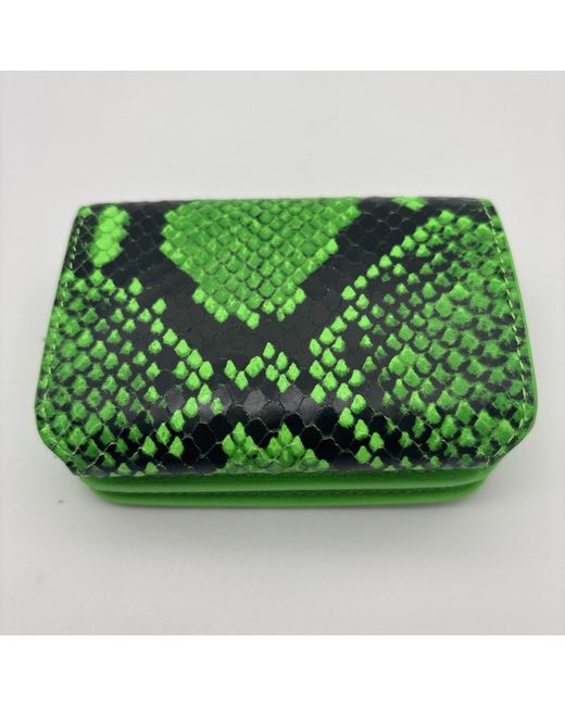The Balenciaga Women’s Cash Mini Wallet is a stylish accessory crafted from luxurious calf leather, featuring a striking python print in fluoro green and black.This compact wallet is the perfect size for carrying your essentials and adds a touch of sophistication to your outfit. With its sleek design and vibrant colour, this mini wallet is a must-have for any fashion-forward woman looking to make a statement.