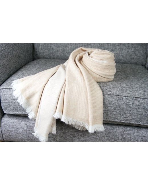 Women's Beige Reversible Wrap Throw Sofa Blanket Scarf Wool Ladies Shawl