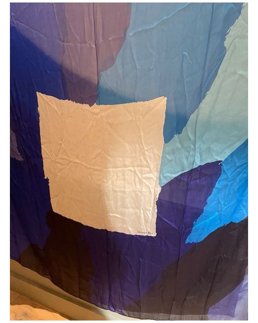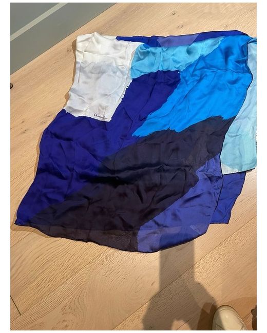 Women's Blue CHRISTIAN Patch Scarf Silk