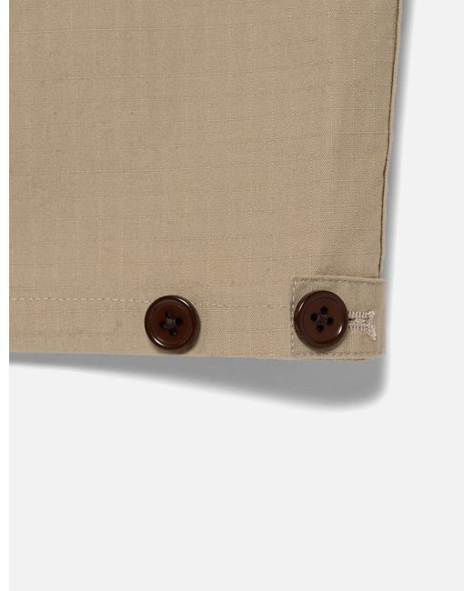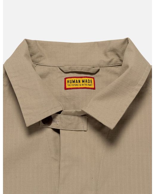 Human MadeCotton Flight JacketMade of lightweight cotton ripstop fabricMilitary-inspiredWide boxy silhouetteAnimal graphic with a soaked-in printConcealed button frontGold foil-stamped leather patch on the front placketHeart buttons on the front flap pocketsAdjustable hem tabsColor: Beige