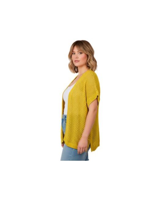 This lightweight netting cardigan features a breathable open-knit texture with a classic button-front design for easy layering. Designed with relaxed dolman sleeves, rib trim details, and side vents, it offers a comfortable fit with effortless movement. An ideal warm-weather layer, it adds subtle texture and polish to tanks, tees, and dresses alike.fabric: Soft, breathable cotton for all-day comfort.fit: Relaxed fit. V neckline. Button front. Short dolman sleeve.care: Machine Wash. Key Features Include:100% COTTONImported. Length: 29". Plus Sizes 14-32Avenue