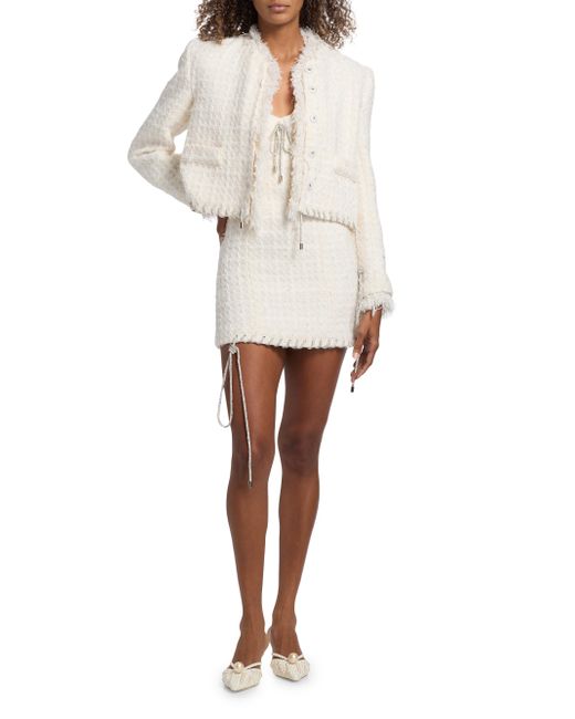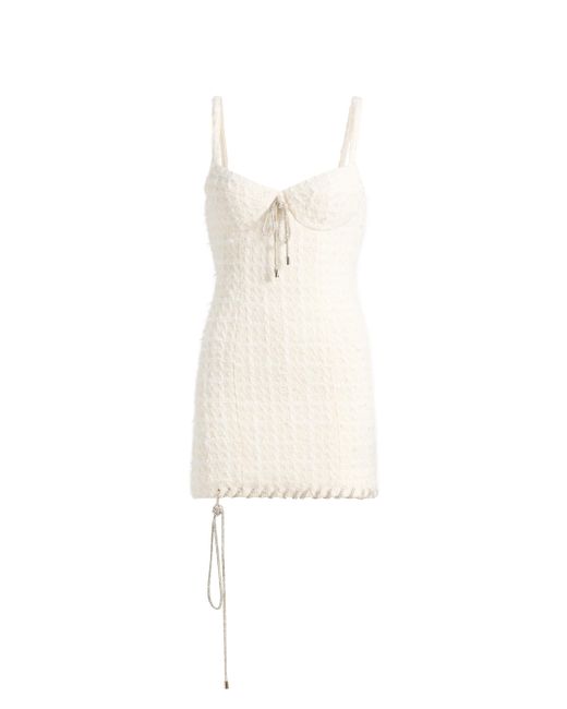 Area's Tweed Lady minidress flaunts a textured finish with a touch of wool, complete with hem whipstitching from a crystal-embellished cord. This piece includes a V-neckline, adjustable straps, and molded cups. V-neck Adjustable straps Molded cups Whipstitched hem Concealed back zip closure 70% polyester/30% wool Dry clean Imported SIZE & FIT Model measurements: 5'10" tall Model is wearing a US size Small ABOUT THE BRAND Founded in 2014 by designers Beckett Fogg and Piotrek Panszczyk in downtown New York City, AREA is a design studio with a bold perspective. The label focuses on innovative embellishments on its playful ready-to-wear and accessories. Infused with energy and eclecticism, AREA is a favorite pick for Hollywood starlets. Advanced European - Italian Collections > Area > Saks Fifth Avenue. Area. Color: Cream White. Size: XS.