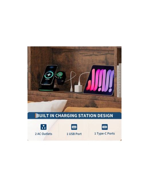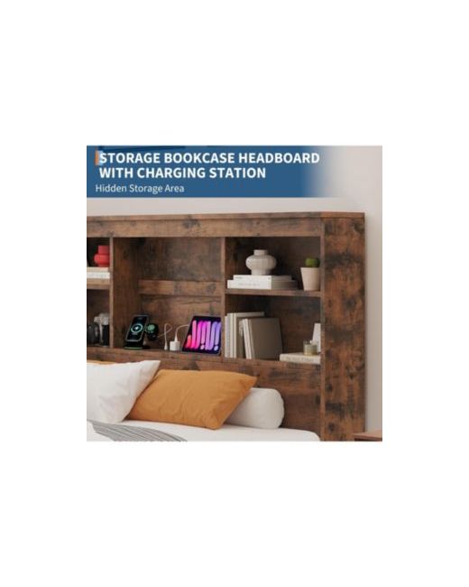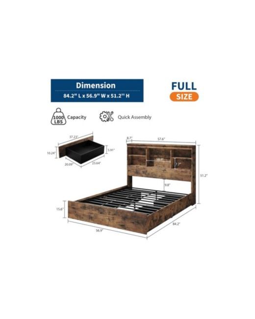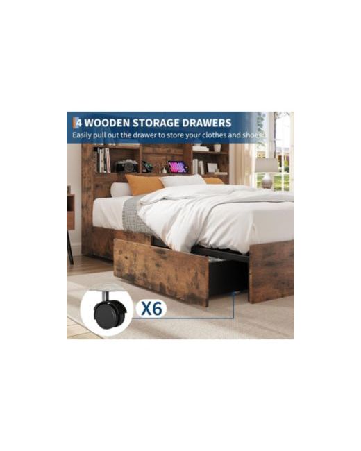 Women's Bed Frame High Storage Bookcase Headboard 4 Drawers Charging Station Noise-Free No Box Spring