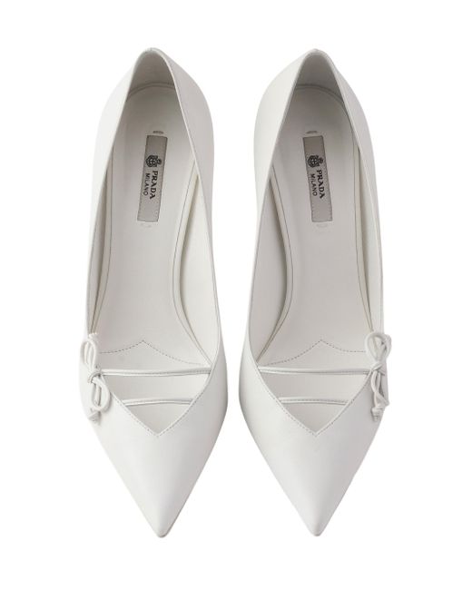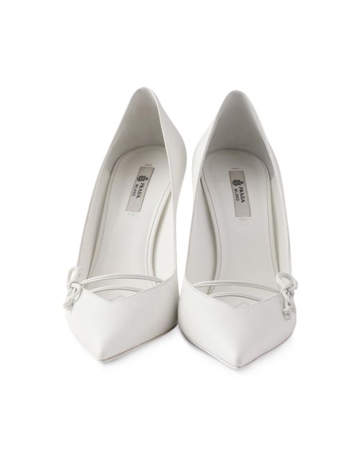 Leather sole with rubber heel layer and metal lettering logo Leather-covered heel, height 100mm / 4'' 100% Leather Imported. Lsd Rtw - Prada Rtw > Prada > Saks Fifth Avenue. Prada. Color: White. Size: 6.