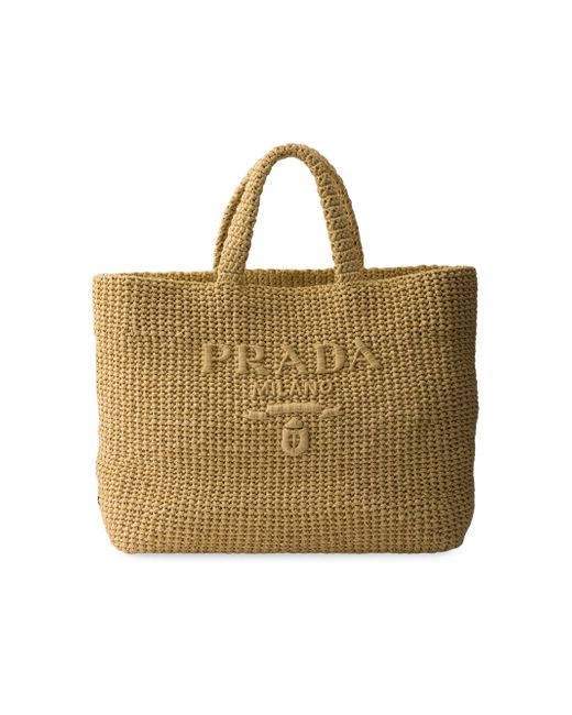 Raffia-effect yarn Crochet handles Embroidered lettering logo on the front Enameled metal triangle logo on the side Unlined interior Imported 100% Viscose - 100% Calf Leather 40 cm W x 34 cm H x 16 cm L / 15.7'' W x 13.4'' H x 6.3'' L. Lsd Handbags - Prada Handbags Access > Prada > Saks Fifth Avenue. Prada. Color: Beige Khaki.