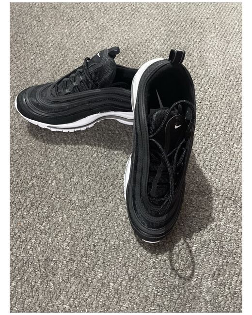 The Nike Air Max 97 Women's Trainers in size 6 are a stylish and comfortable choice for casual wear. Featuring a lace-up closure, cushioned insole, and breathable upper material, these trainers are perfect for activities such as gym training, cross-training, or running. The black colour with Nike's iconic logo accents gives a sleek and sporty look, suitable for outdoor, athleisure, and 90s-themed outfits. Made with a rubber outsole for durability, these trainers offer a standard shoe width and are part of Nike's Air Max product line, known for their quality and performance.