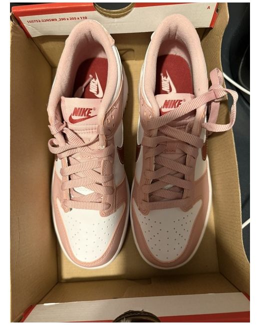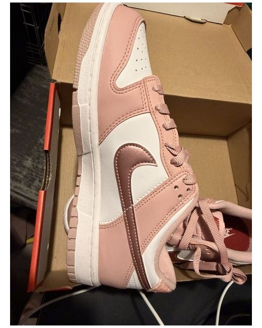 These Women's Nike Dunks in size UK 6 feature a stylish white and dusky pink colourway, perfect for casual occasions. With a low-top design and lace-up closure, these trainers offer comfort and style. Made with leather upper material and a rubber outsole, they are ideal for autumn, winter, spring, and summer wear. The iconic Nike logo adds a touch of flair to this fashionable sneaker, making it a must-have for any woman's shoe collection.