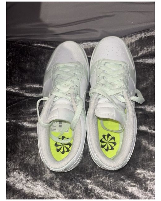 These Women’s Nike Dunks in size 5 are a stylish and comfortable option for casual wear. Featuring a lace-up closure and a rubber outsole, these sneakers offer a standard fit and are suitable for spring. The green colour and Nike logo accents add a trendy touch to the design, while the foam insole provides added comfort. Perfect for women looking for a versatile and on-trend footwear option.