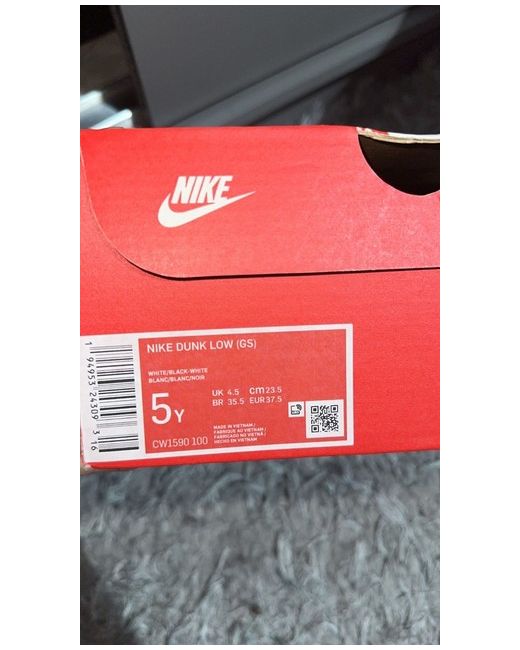 The Nike Panda Dunks are a stylish pair of trainers perfect for casual wear. Featuring a low top design with a round toe shape and lace-up closure, these shoes offer a comfortable fit for kids. The black colour with a panda theme and Nike logo accents adds a trendy touch to the overall look. Made with leather upper material and a rubber outsole, these sneakers provide both durability and comfort for unisex kids. Ideal for spring, these shoes are a must-have for kids looking to add a touch of style to their wardrobe. This is a size UK 5 YG. See pictures. Can fit a woman’s size 5 UK .