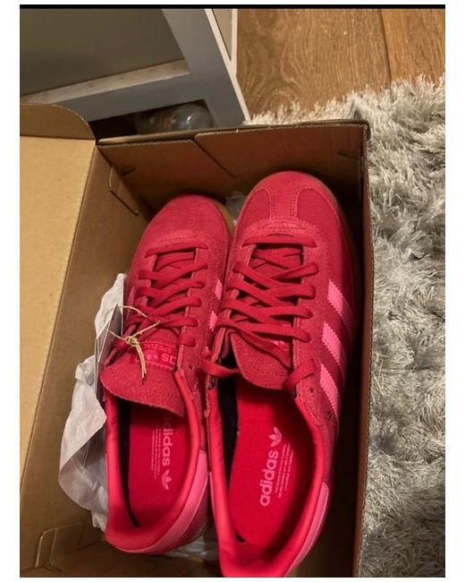 The product is a pair of pink adidas trainers specifically designed for women in a UK shoe size 5.5. These stylish sneakers belong to the adidas Special product line and feature the iconic adidas branding. Perfect for casual wear, the trainers offer comfort and style in a vibrant pink colour, making them a popular choice for women looking to add a pop of colour to their footwear collection.