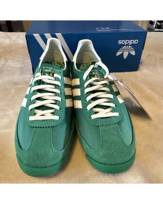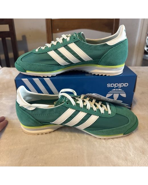 The adidas SL 72 OG Women's Size 4.5 in Green is a stylish trainer designed for casual occasions. Featuring a low top shoe shaft style with a lace-up closure, it offers a comfortable fit for women. The green-coloured sneaker is part of the adidas SL product line and is made with a rubber outsole for added durability. With a standard shoe width and a foam insole, these trainers are perfect for the summer season. The iconic adidas brand and classic model ensure both fashion and functionality in this modern footwear design. Box has no lid