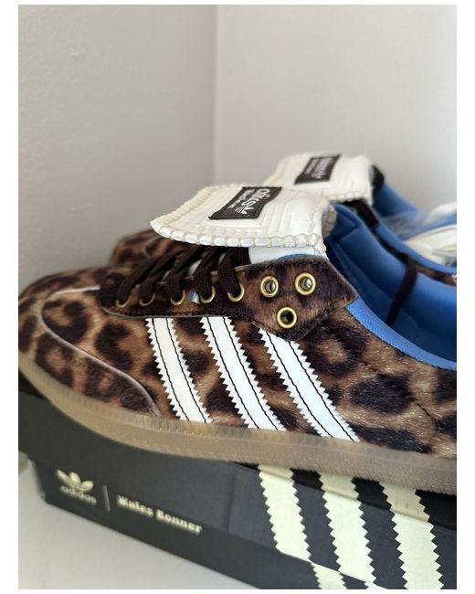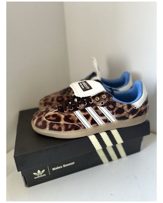 The adidas Wales Bonner Samba trainers are a stylish and versatile option for women. With a low top shaft style, lace-up closure, and standard shoe width, these brown leather sneakers are perfect for casual occasions during the spring season. The rubber outsole provides durability and grip, while the iconic adidas branding adds a touch of sporty flair to any outfit. Designed in a UK shoe size 7, these trainers are a must-have for people looking for both comfort and style in their footwear collection.