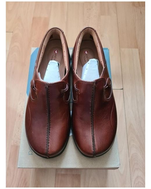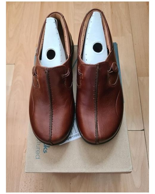 Lovely pair of Clarks Unstructured Un Loop 2 Walk dark tan genuine leather slip on shoes in size UK 4. The upper leather retains the iconic Clarks handwriting but with a sleeker appearance. the shoes is exceptionally good (as you would expect from an item made by Clarks).
