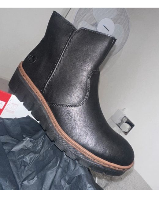 Brand new, never worn – still in original box with tags. Classic black Rieker ankle boots, featuring soft lining for comfort and a sturdy anti-stress sole. Side zip for easy wear, stylish contrast brown stitching around the sole. Perfect for everyday wear in autumn and winter — warm, comfortable, and high quality as expected from Rieker.