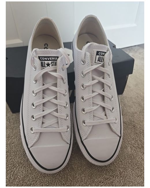 These Converse High Platform Leather Trainers in UK size 6.5 are a stylish and versatile choice for casual occasions during the summer season. Featuring a lace-up closure, rubber outsole, and leather upper material, these white sneakers from the Converse Chuck Taylor All-Star Lift Platform collection offer a comfortable and fashionable option for women looking to make a statement with their footwear. Perfect for adding a touch of sporty chic to any outfit, these trainers are a must-have addition to any wardrobe.