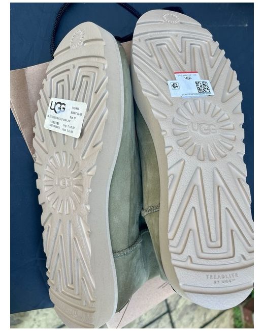 Here for sale are a gorgeous genuine pair of unworn Ugg soft olive green leather deconstructed mini zip boots. You can see from the photos that they have all the genuine logos etc. I bought them in a hurry thinking they were a UK 10 as per the label on the sole but a few weeks later when checking on the label inside confusingly they are in fact a UK 9 and by then I was too late to return them. As you can see they were originally priced at £135 so grab yourself a bargain. Any questions please just ask. Thanks for looking.