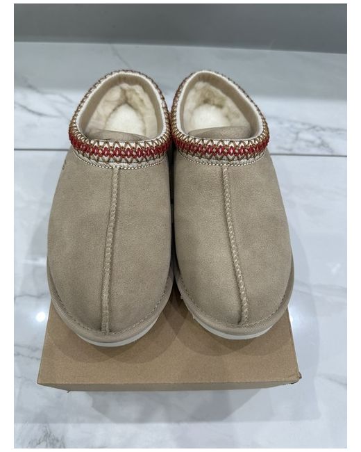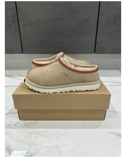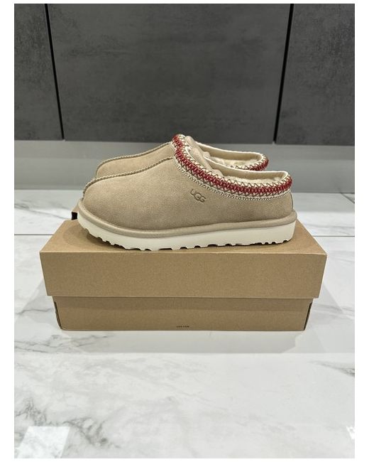 The UGG Tasman ll Women's Size 5 Beige slippers are a stylish and comfortable choice for any woman looking for a slipper shoe option. Made with a suede/sheepskin upper and featuring a flat heel, these slipper shoes offer a cosy and roomy fit. The beige colour and cherry theme add a touch of both elegance and style, making them a versatile addition to any wardrobe. Perfect for lounging around the house or running quick errands, these UGG slippers are a must-have for any woman looking for both comfort and fashion in their footwear. - Brand New and Comes with Original Box!