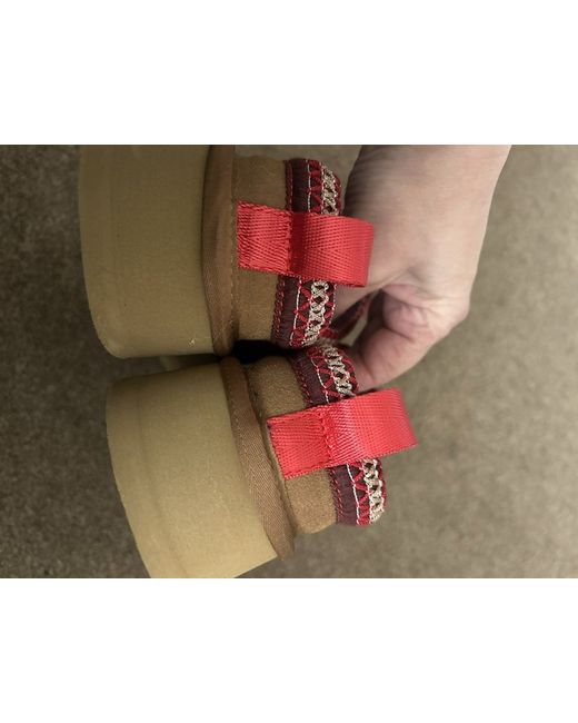 The UGG Sand Coloured Tasman Mules in Size 8 are a stylish and comfortable slipper option for women. Featuring a round toe, low heel, and slip on closure, these mules are perfect for casual wear during the winter season. Made from suede and showcasing the signature UGG Australia logo accent, these slippers offer both fashion and functionality. The mule style and standard shoe width make them a versatile choice for everyday wear, while the comfort features ensure all-day ease. Ideal for adding a touch of luxury to your loungewear collection.