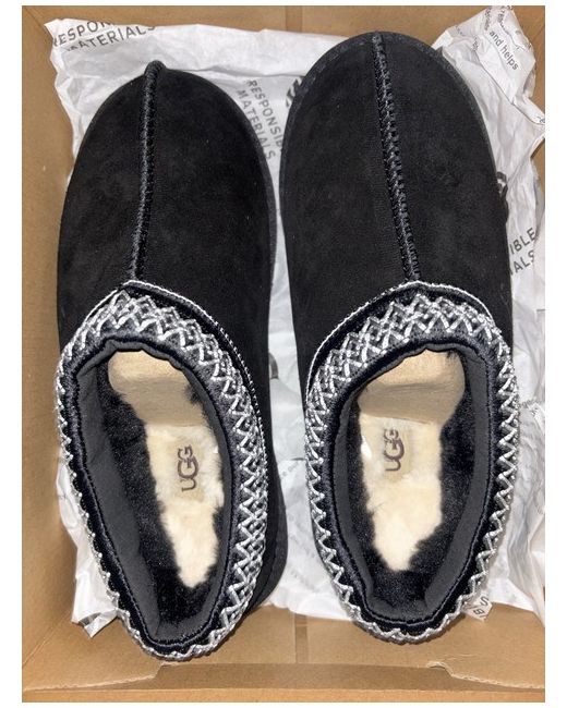 The UGG Tasman Black slipper in UK size 5 is a stylish and comfortable choice for women. Featuring a round toe, slip-on closure, low heel height, and sheepskin lining, these slippers are perfect for casual wear during the winter season. The black suede upper material with the brand's logo accents adds a touch of sophistication to this classic UGG slipper. Made with a rubber outsole, these slippers offer both style and comfort for everyday wear.