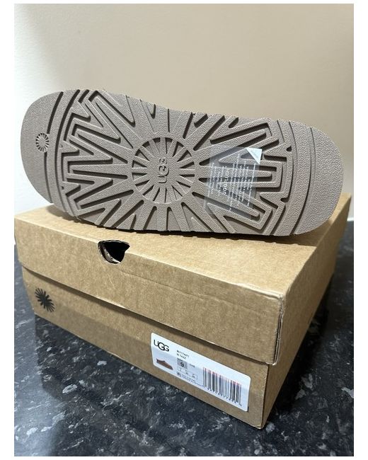 The UGG Women's Round Toe Bootie in Beige is a casual and stylish footwear option for women. Made from shearling fabric with a low heel height, it is perfect for winter. The pull-on closure and ankle shaft style provide easy wear and comfort. Lined with sheepskin and featuring a rubber outsole, these boots are designed for outdoor use with a touch of luxury. The UGG Australia logo accents add a touch of sophistication to this classic and trendy boot.
