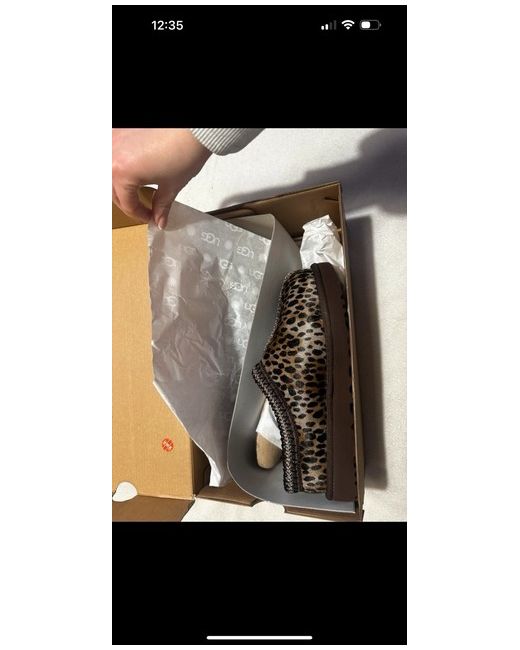 The Ugg Tasman Women’s Leopard Print Slipper in size 4 is a stylish and comfortable slip-on shoe perfect for casual occasions during the winter season. Made with suede and featuring a round toe shape and low heel height, these slippers are designed for comfort and practicality. The leopard print design adds a trendy touch to the classic Ugg style