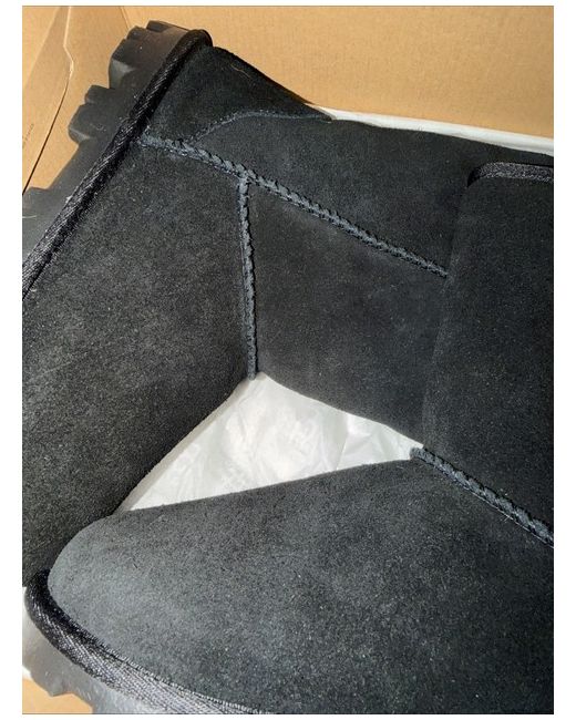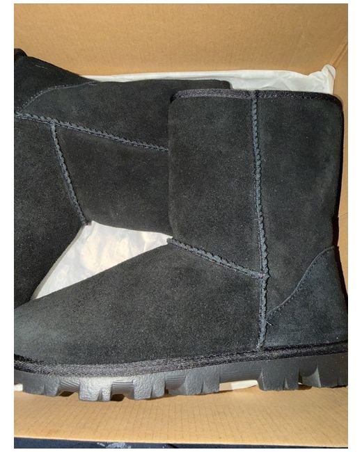 The women's UGG Essential Short II 'Black' boots are a stylish and comfortable choice for any winter wardrobe. These shearling-lined boots feature a suede upper in classic black, with a UK shoe size of 6. The UGG brand is known for its quality and luxury, making these boots a versatile and must-have addition to any collection. Perfect for keeping your feet warm and cosy during the colder months.