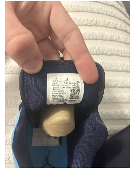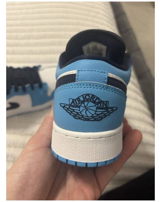 The product is a pair of women's Jordan 1 Low top trainers in size 5 UK. These sneakers are in a classic blue colour with a lace-up closure and a rubber outsole for comfort and durability. The shoes are from the Air Jordan product line and feature the iconic logo accents. Perfect for casual occasions, these trainers offer a stylish and comfortable option for women looking for a versatile sneaker for the summer season.