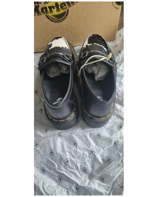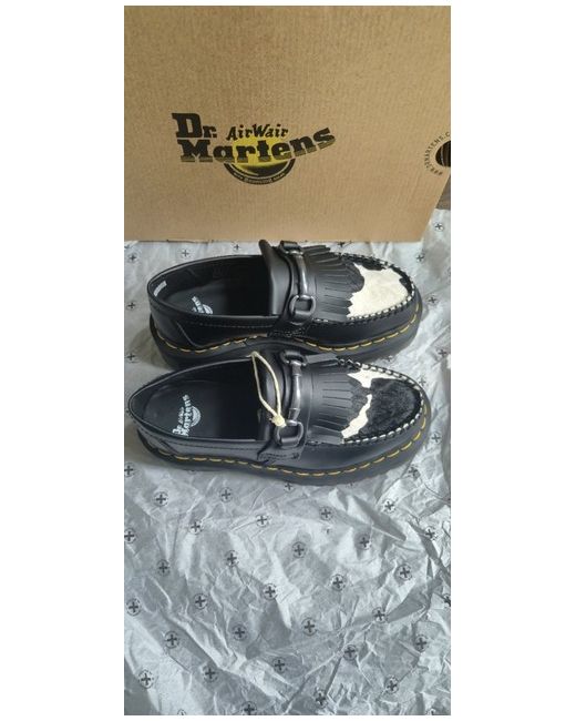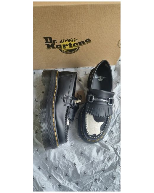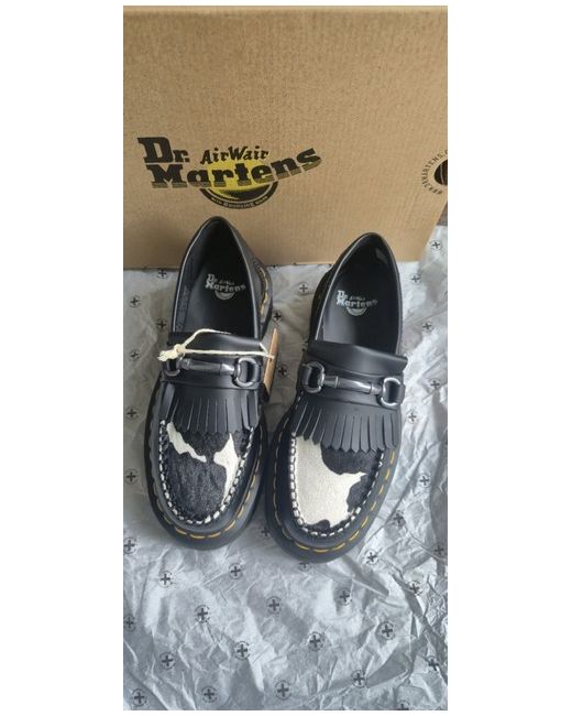 The Dr. Martens Adrian Snaffle Quad Platform Loafers in Black Cow Print are a stylish and comfortable choice for women in UK size 3. Featuring a quad platform sole for added height and stability, these loafers are perfect for a casual yet chic look. The black cow print adds a touch of personality to the classic black sneaker style, making them a versatile option for everyday wear.