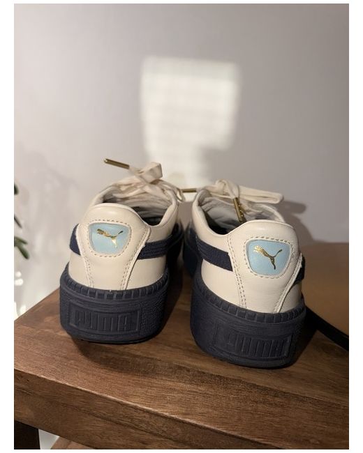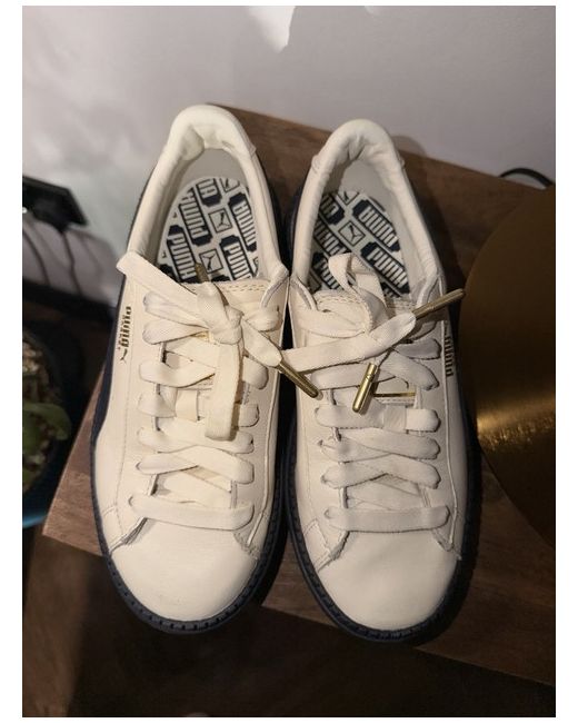Puma Basket Platform Trace Block sneakers in the "Vanilla Ice/Night Sky size 4 New only worn around the house. Please note there is a slight mark on the front of the shoe (not noticeable and might come of)