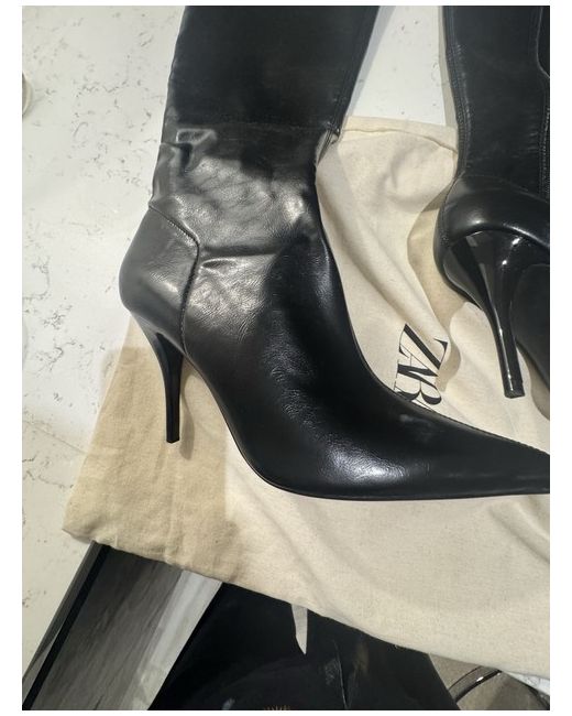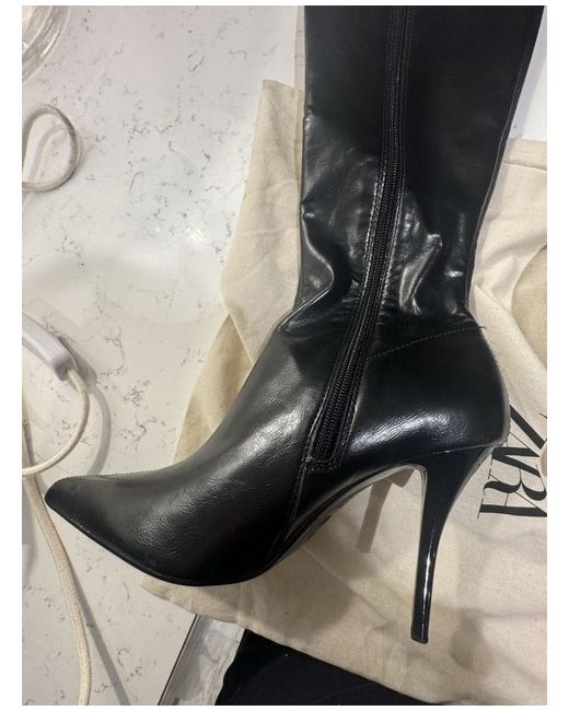 Stunning black Leather knee high boots/ I bought December 2025 but unfortunately never got to wear because they do not fit me.