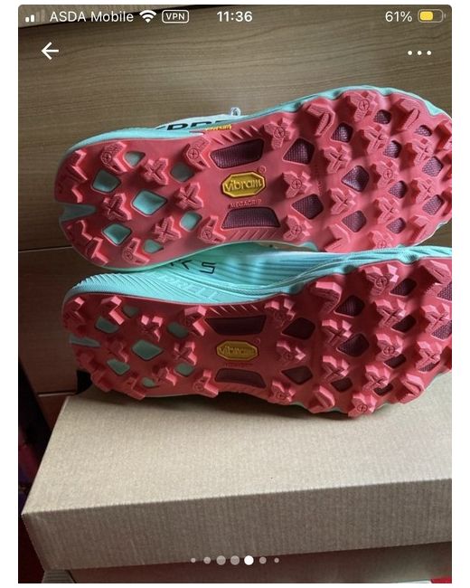 The MERRELL Women's Agility Peak 5 Sneakers are a stylish and versatile option for women. Featuring a low top design, lace-up closure, and solid white colour, these sneakers are perfect for activewear, casual outings, and even workwear. Made with a breathable mesh fabric and a comfortable foam insole, they are suitable for all seasons including winter, summer, fall, and spring. The rubber outsole provides durability and traction, making them ideal for any outdoor activities. Designed by Merrell, a trusted brand known for quality shoes, these sneakers are a reliable choice for women on the go. Size UK6 new and still in box