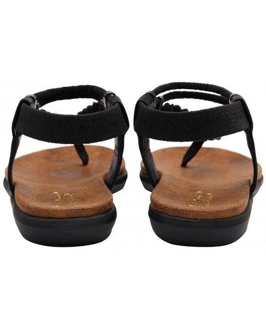 Black SOL Ladies Elasticated Slingback Toe Post Braided Summer Sandal