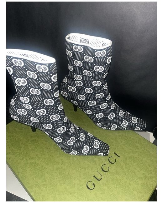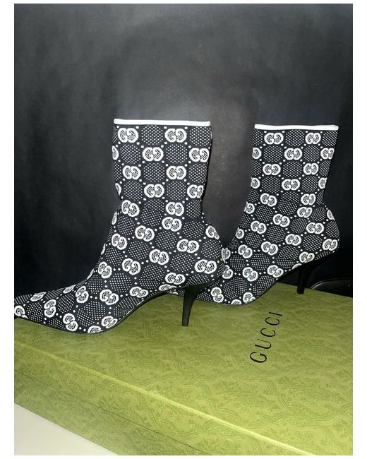 Women’s Gucci GG knit ankle boots Size IT - 40 / UK 7 Black knit stretchy fabric with white logo GG Heel 3 inches high Silver metal G logo on back Brand new with box, dust bag and tags RRP £1150
