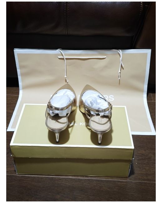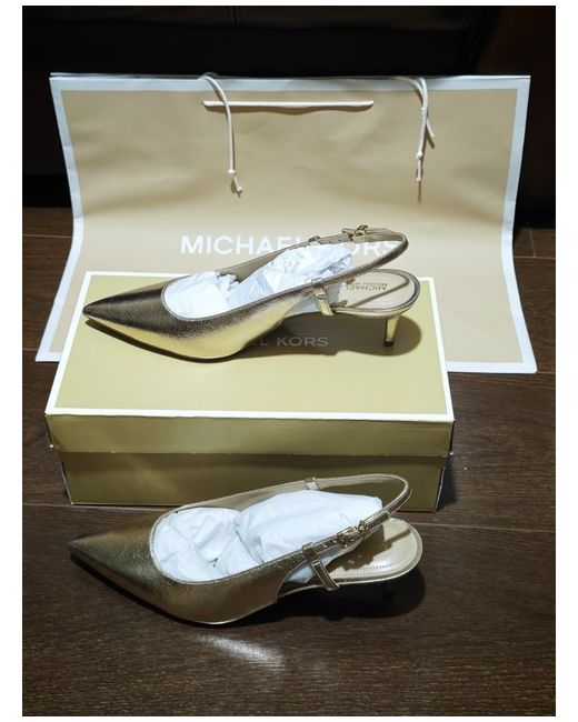The Michael Kors Doreen Flex Slingback Pump in Kitty Heel size 6.5 is a stylish and elegant choice for women who want to make a statement. Made from leather with a textile upper, these gold heels are perfect for adding a touch of luxury to your summer wardrobe. The slingback style and kitten heel offer both comfort and sophistication, making them ideal for both casual and formal occasions. This timeless piece from Michael Kors is a must-have for any fashion-forward woman looking to elevate her shoe collection. 2 Inch Heel