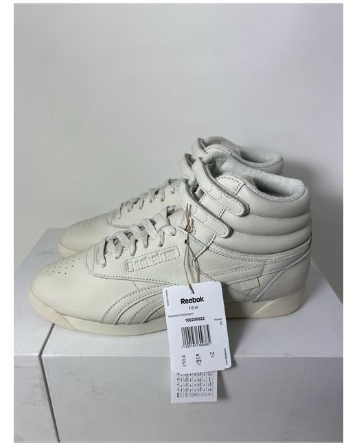 Brand new with box The Reebok X Anine Bing Freestyle Hi Trainers in UK size 7.5 for women are a stylish and iconic sneaker collaboration between Reebok and fashion designer Anine Bing. In a bone/chalk colourway, these trainers offer a versatile and trendy option for women looking for a statement shoe. With the Reebok Freestyle Hi model and signature sneaker style, these trainers combine fashion and function for a chic and comfortable footwear option. Perfect for casual wear or adding a touch of sporty flair to any outfit, these Reebok X Anine Bing trainers are a must-have for any fashion-forward individual.