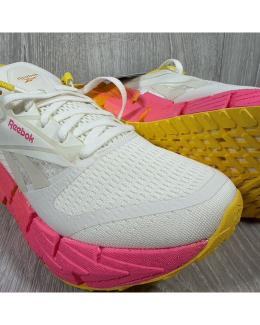 The Reebok Floatzig 1 Running Trainers in Women’s UK size 5 are a stylish and functional choice for women looking for comfortable and supportive footwear. The chalk/pink colour combination adds a vibrant pop to any activewear outfit, while the rubber outsole provides traction for running and jogging activities. These trainers feature a lace-up closure for a secure fit and have a standard shoe width for a comfortable feel. Perfect for summer workouts, these Reebok trainers are a must-have for women who value both style and performance in their footwear. Brand new with tags and a full box. Thank you ☺️