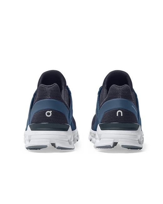 The On Cloud Cloudswift Denim Midnight trainers are a stylish and comfortable choice for active women. With a low top design and lace-up closure, these sneakers are perfect for running and jogging in the spring and summer seasons. The mesh upper material and rubber outsole provide breathability and support, making them ideal for exercise. The shoe is a standard width and features a modern design in a sleek blue colour, embodying the On Cloud brand's signature athletic style.