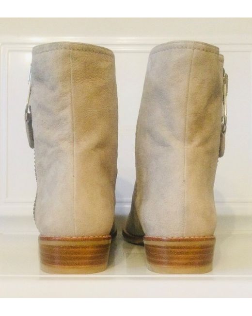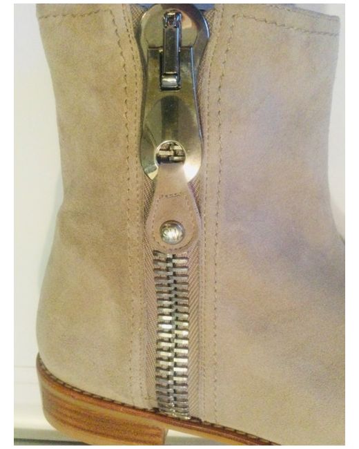 Stuart Weitzman embossed soles. Concealed elastic panel for a snug fit. Exposed zip with SW logo on tab.