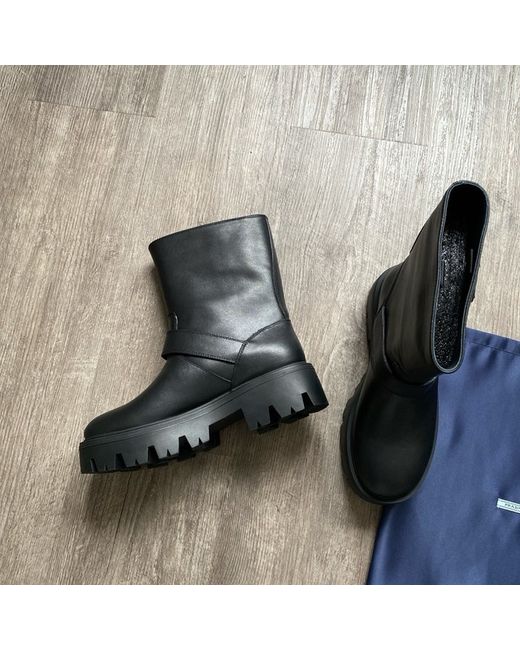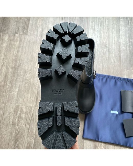 These Prada Woman Boots in size 39 are a stylish and versatile addition to any woman's wardrobe. The ankle boots feature a slip-on style, leather lining, and a classic black colour, making them perfect for casual occasions during the winter season. With a standard shoe width and leather upper material, these boots offer comfort and durability while showcasing the renowned Prada brand. Ideal for women who appreciate quality and timeless design in their footwear choices. Size 39 Box damaged