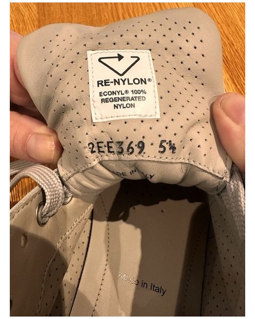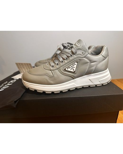New display unworn Prada logo re nylon grey Prada size 5.5. Provided with Prada box but wrong size on box. Dust cover and Prada tags provided. GREY. Very slight marks as seen in photos but not noticeable.