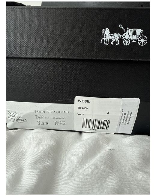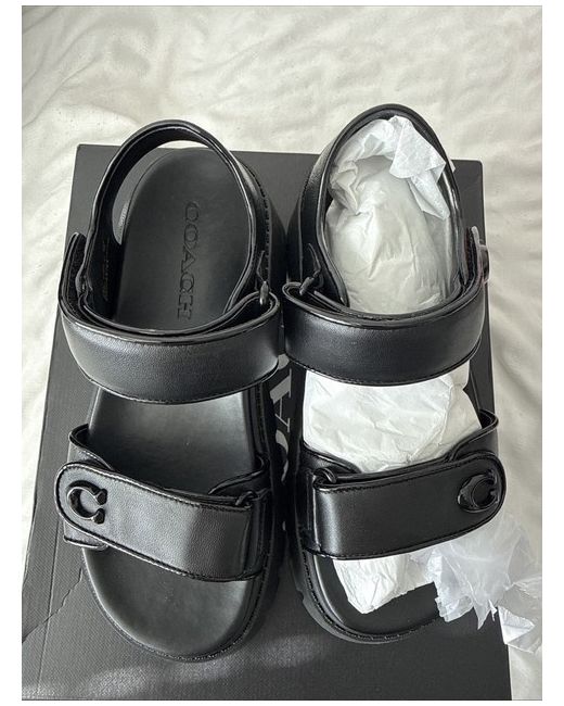 The Coach Bryan Platform Sandal is a stylish and trendy women's shoe in UK shoe size 3.5. This black strappy sandal features the iconic Coach logo accent, making it a must-have for summer fashion. Crafted from leather, this Coach Signature product exudes a sense of sophistication and elegance, perfect for any summer outfit. Whether paired with a casual dress or accessorised with a shoulder bag, these sandals are sure to make a statement.
