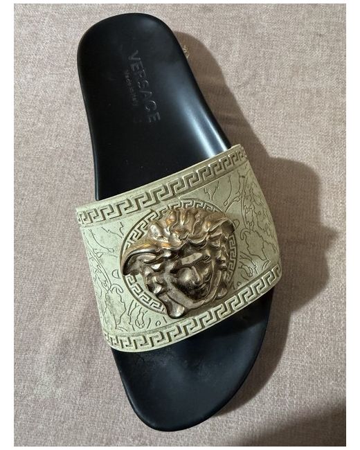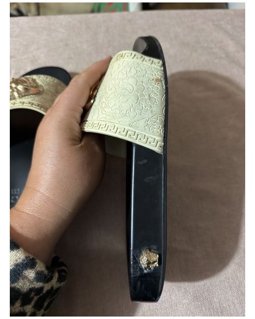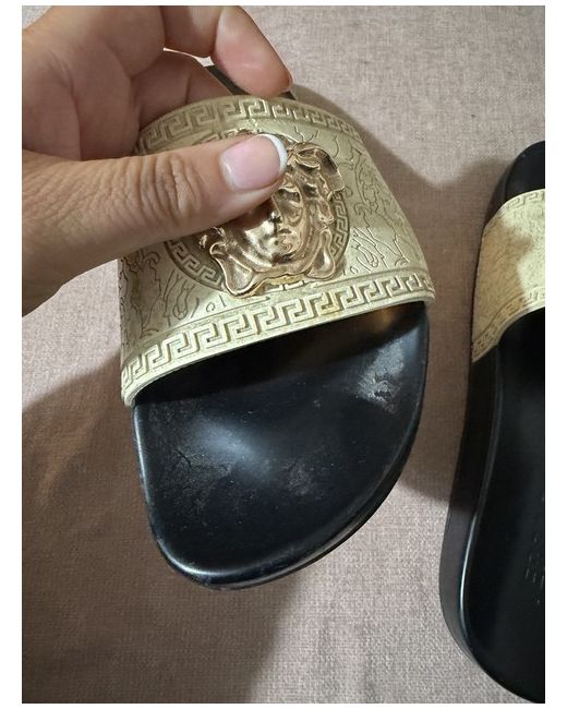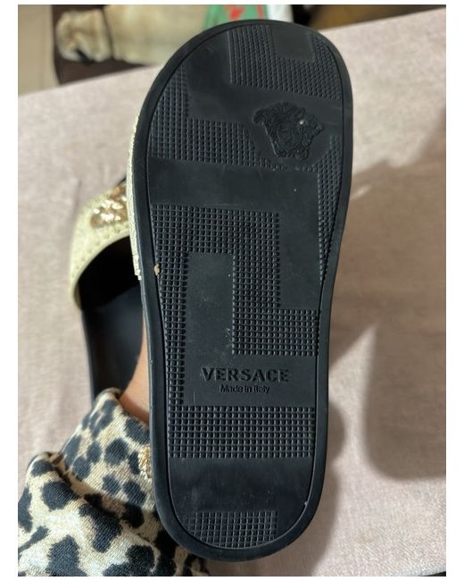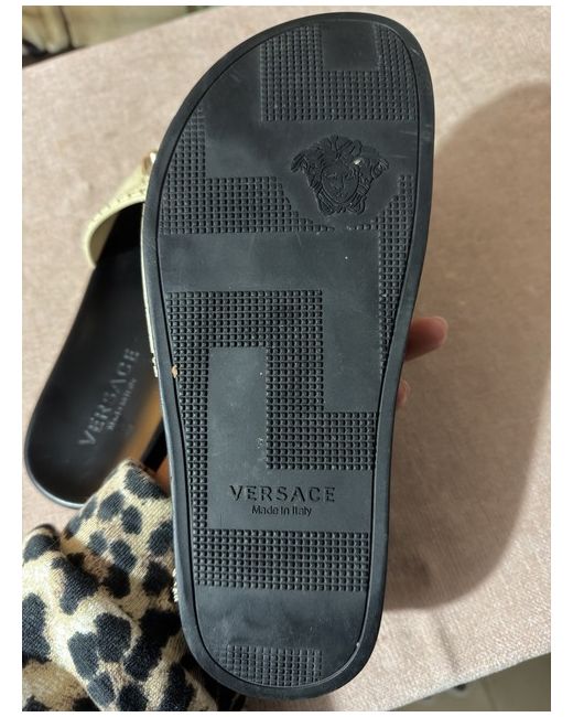Versace sliders, I have written size 7 because my foot is a 7 and fits inside comfortably but I would say these are actually a size 6. The shoe has no sizing on them and I don’t have the box. Never been worn but some markings from trying on at home.