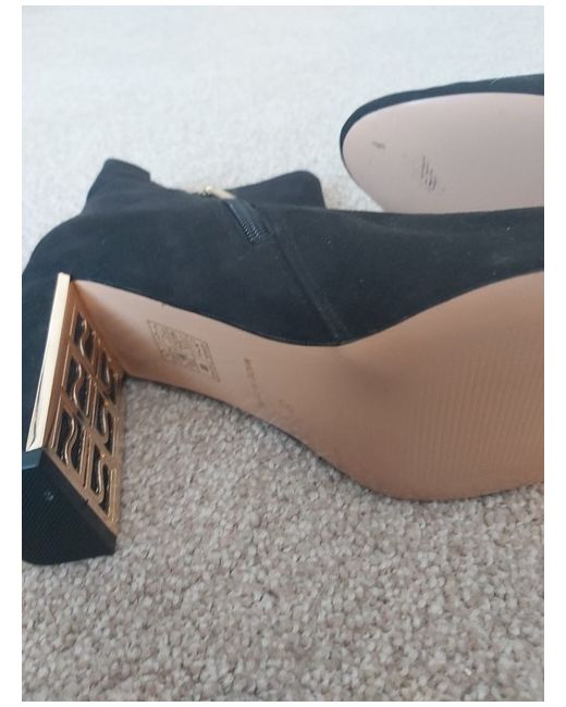 These River Island ankle boots in size 8 are a stylish addition to any woman's wardrobe. Made from black suede, they are versatile enough to be worn with a variety of outfits.