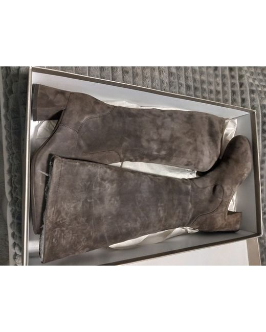 Introducing the new Peter Kaiser Brit Boots in size 4. These sleek knee-high boots feature a round toe and a low block heel, making them perfect for casual winter occasions. Crafted from grey suede with a leather insole, these boots offer both style and comfort. The sock style design adds a touch of luxury to your outfit, making them a must-have addition to any woman's shoe collection.
