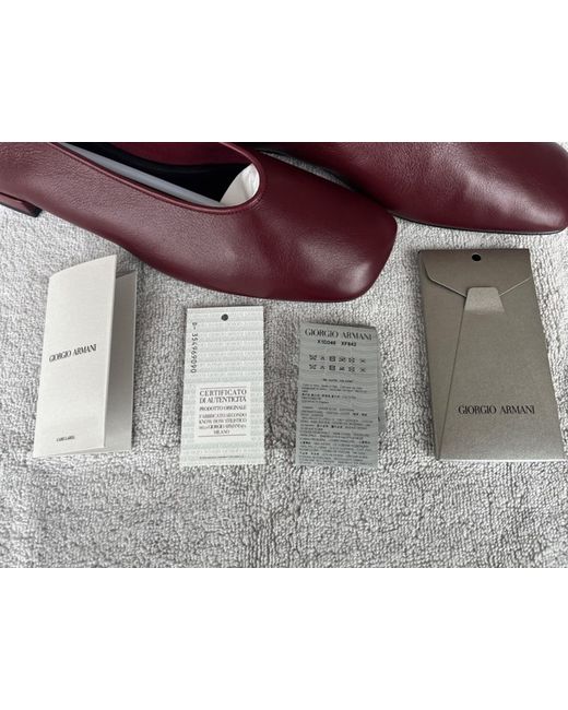 Armani x 10 Corso Como. Burgundy leather ballet flats. Sole, calfskin. Inner sole, sheep leather. Lining, sheep leather.